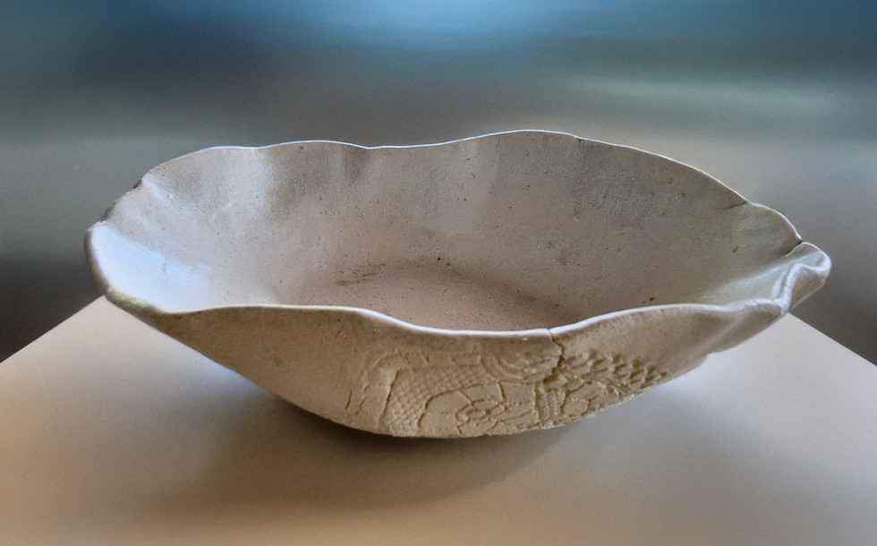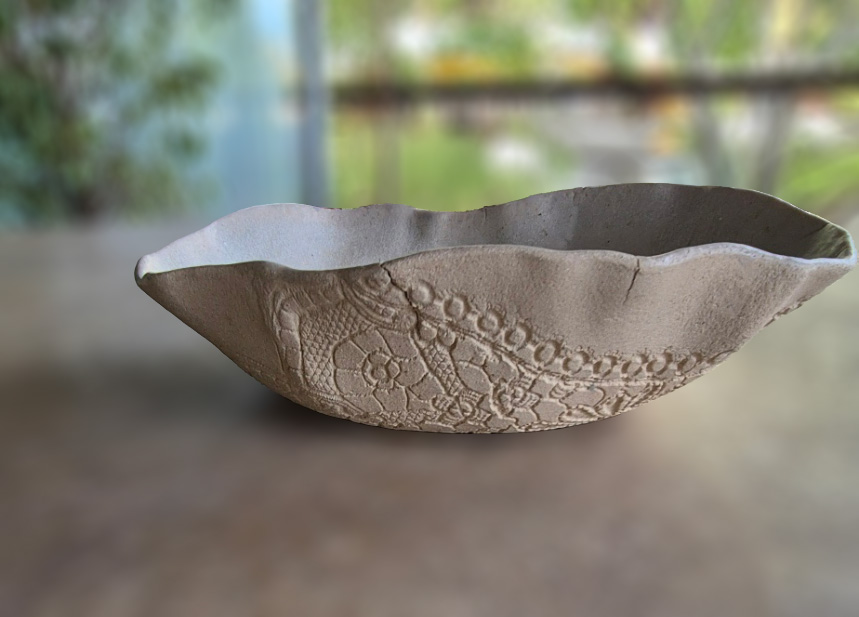 Una pieza de gres que combina funcionalidad y expresión artística. Presenta un borde irregular y suavemente ondulado que le aporta movimiento.